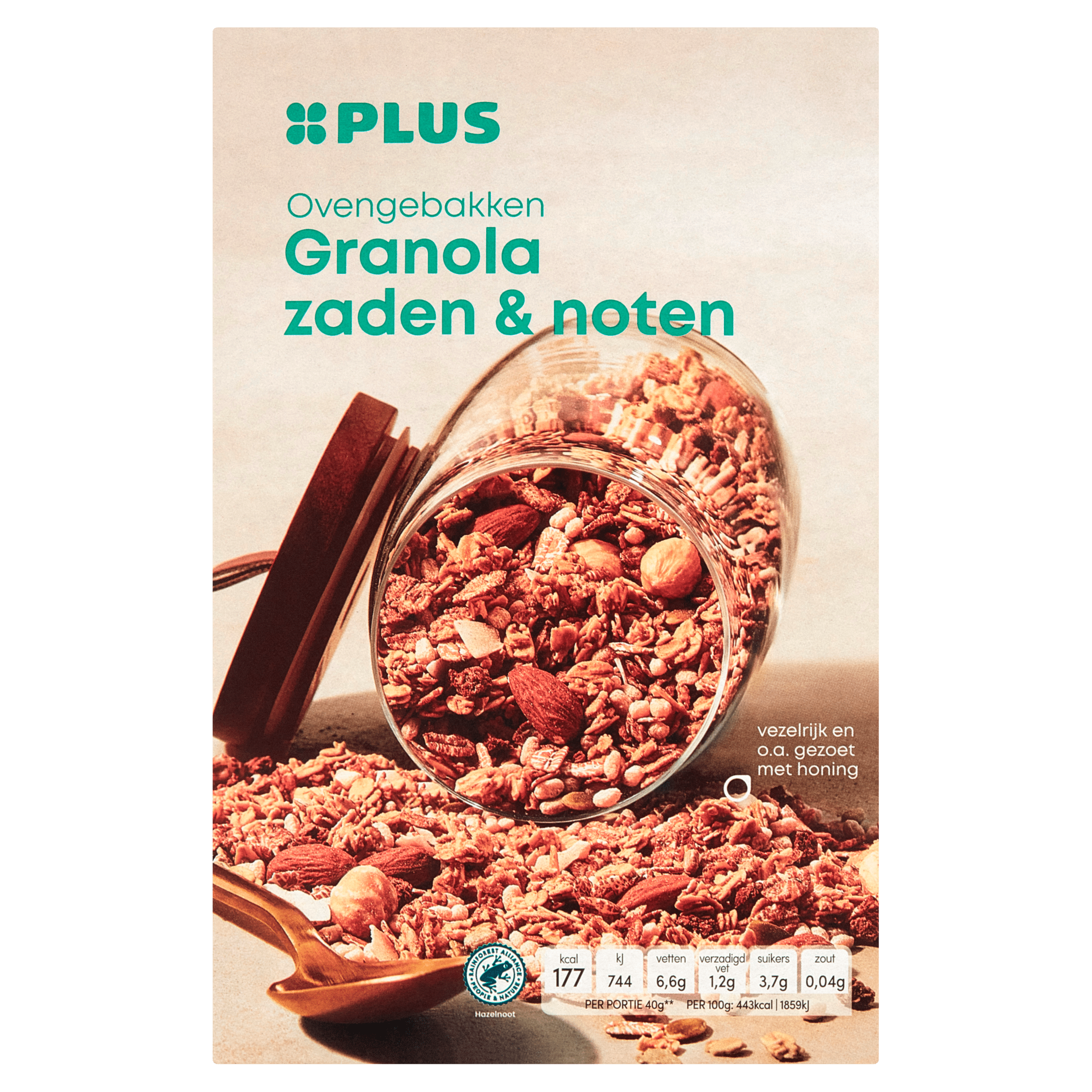Ingrediënten :42% volkoren HAVERVLOKKEN, 15% volkoren speltvlokken (TARWE), gemoute getoaste TARWEVLOKKEN (TARWE, GERSTEMOUT, emulgator: lecithinen), rijstcrisp (rijstebloem, TARWEBLOEM, suiker, TARWEMOUT, GERSTEMOUT), 9% honing, 6% zonnebloempitten, 4% pompoenpitten, 4% lijnzaad, zonnebloemolie, 3% AMANDELEN, getoaste kokoschips, 1,5% HAZELNOTEN*, vanille-extract, zout, antioxidant: E306.