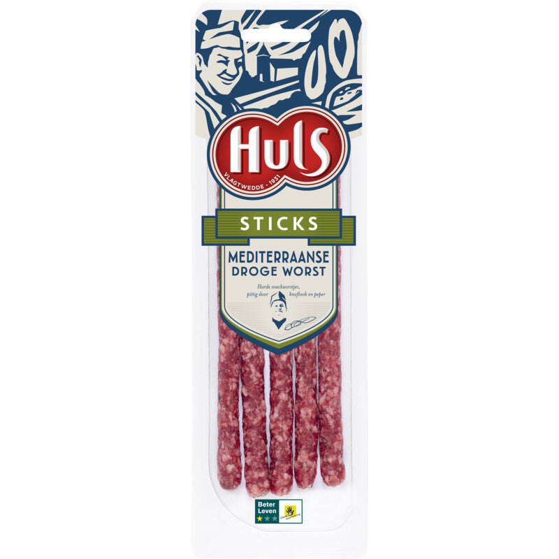 Huls sticks zijn stevige worststicks, traditioneel bereid van varkensvlees, mediterraans gekruid door de toegevoegde knoflook en oregano. Stevige worststicks Mediterraans gekruid met knoflook en oregano Lekker als tussendoortje, voor onderweg of bij de borrel Makkelijk om uit te delen