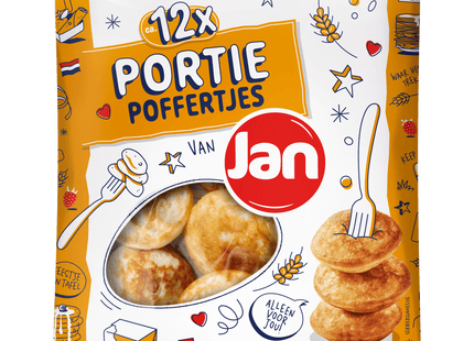 Met de portie poffertjes van Jan heb je een perfecte traktatie voor jezelf! Voor het beste resultaat bak je de Jan poffertjes in de airfryer. Eenmaal opgewarmd, alleen nog een klontje boter en poedersuiker erop, en klaar is Jan (euhh Kees natuurlijk). Probeer ook eens wat vers fruit bij de Jan poffertjes voor een verrassende smaak!