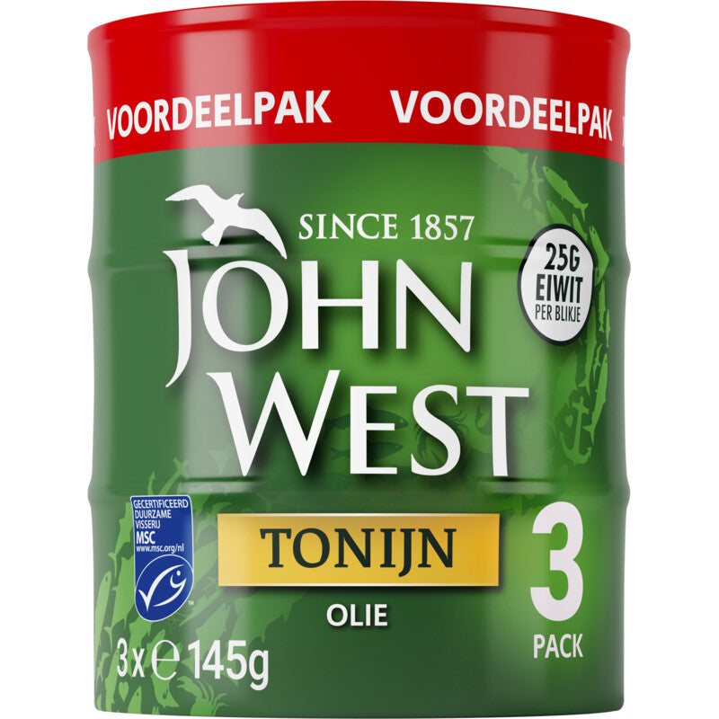 John West tonijnstukken in zonnebloemolie zijn mals en sappig! Nu in een handig 3 pack formaat. Wild gevangen Skipjack tonijn. Op basis van zonnebloemolie geeft een nog vollere smaak. Rijk aan eiwitten. De basis voor vele recepten. Met de John West tonijnstukken maak je de lekkerste recepten in een handomdraai. Lekker, makkelijk en gezond!