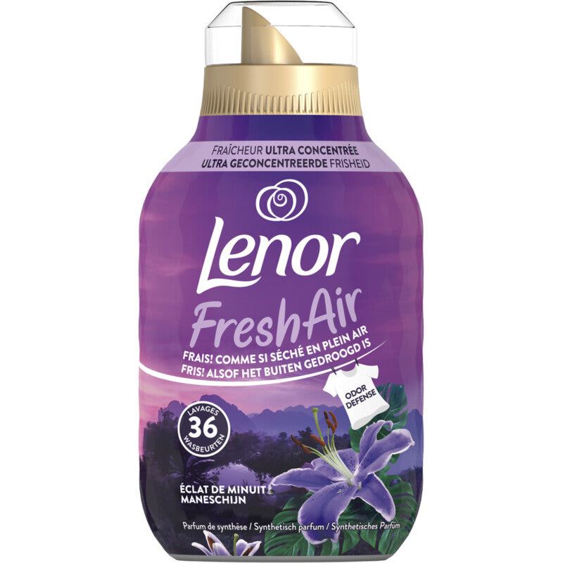 Geniet van frisheid alsof je je kleding buiten hebt gedroogd, zelfs als je binnen droogt! Wasverzachter waarmee je de frisheid van het buiten drogen ervaart Gerecyclede plastic fles Je favoriete wasverzachter met een roze geur Beschermt je kleding tegen vervagen, pluizen en uitrekken Dankzij de innovatieve technologie ervan heb je maar een kleine dosis nodig om dat lijndroog gevoel te krijgen, ongeacht het weer! Lenor fresh air Maneschijn wasverzachter zit vol stralende appelbloesem, zoete meloen en warme amber. Gerecyclede plastic fles (excl. Dop, schenktuit en folie) en recyclebaar (excl. Folie). Lenor fresh air is ontwikkeld in samenwerking met consumenten om de frisheid van buiten te hercreeren en blijft frisheid afgeven wanneer stoffen net zijn gedroogd, in de kast worden bewaard en zelfs wanneer je erin beweegt.