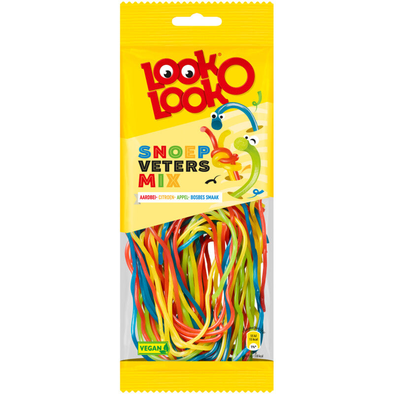 Look-o-look snoepveters in de smaak aarbei, bosbes, citroen, appel.Lekker om te snoepen of voor traktatiesLosse snoepveters ideaal om uit te delenMet natuurlijke kleuren enfruitsap