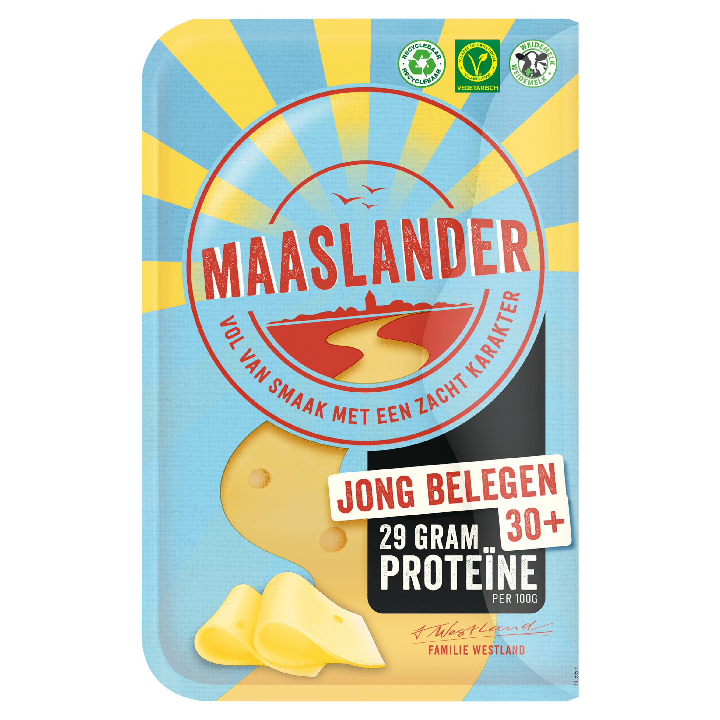 Maaslander 30+ jong belegen heeft het echt allemaal. Een rijke, romige smaak, hij zit van nature bomvol eiwitten en bevat 42% minder vet.