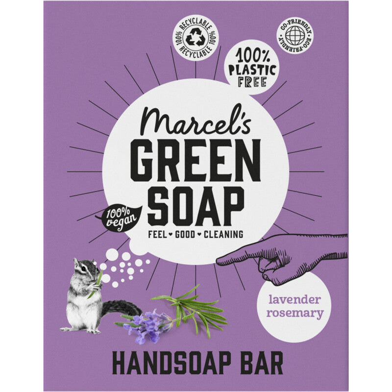 Marcels green soap handzeep bar lavendel en rozemarijn is plasticvrij, vegan, superzuinig en reinigt nog beter dan vloeibare handzeep. Plasticvrij Gaat net zo lang mee als 3 flessen vloeibare handzeep Ruikt fantastisch Zacht en verzorgend Marcels green soap handzeep bar lavendel en rozemarijn is plasticvrij, vegan, superzuinig en reinigt nog beter dan vloeibare handzeep. Met de plasticvrije handzeep bar van marcels green soap wordt handen wassen Pas echt een feestje. Deze handzeep in vaste vorm is gemaakt met natuurlijke ingredienten die niet alleen zacht zijn voor de huid, maar ook voor de planeet. De handzeep bar komt in een kartonnen doosje, en doordat ie zo lekker compact is, voorkomen we onnodig vervoer van water.