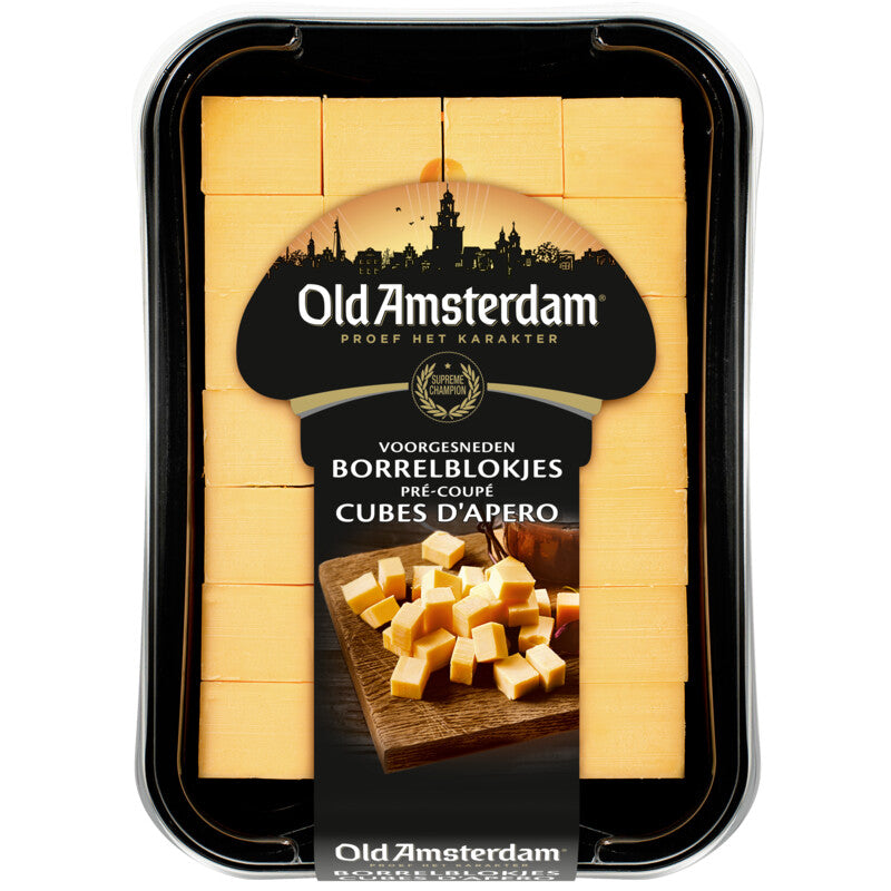Ontdek de perfecte snack voor je borrelplank met de Old Amsterdam Borrelblokjes! Deze heerlijke voorgesneden kaasblokjes zijn ideaal voor de echte kaasliefhebber.