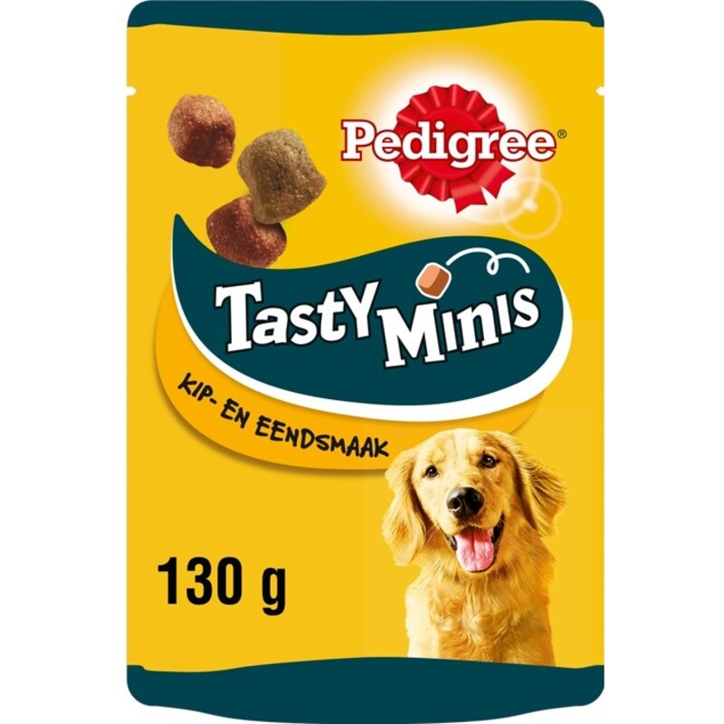 Pedigree tasty minis met kip- en eendsmaak zijn sappige, hapklare traktaties voor volwassen honden. Het zijn overheerlijke kleine tussendoortjes met verschillende texturen en smaken. Minder dan 12 kcal per traktatie Omega 3 helpt hem om fit te blijven Met vitamine e om zijn natuurlijke afweersysteem te onderhouden Mineralen, waaronder calcium, helpen zijn botten sterk te houden