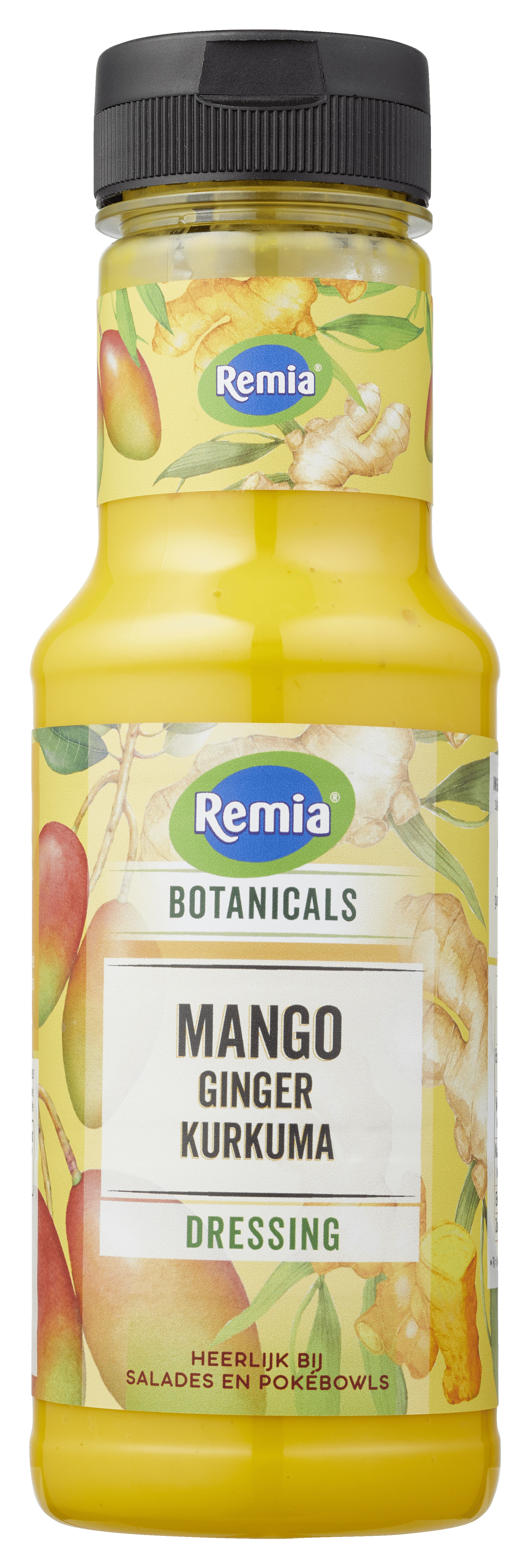 De Remia Botanical dressing Mango is een romige mangodressing met een vleugje gember en kurkuma.