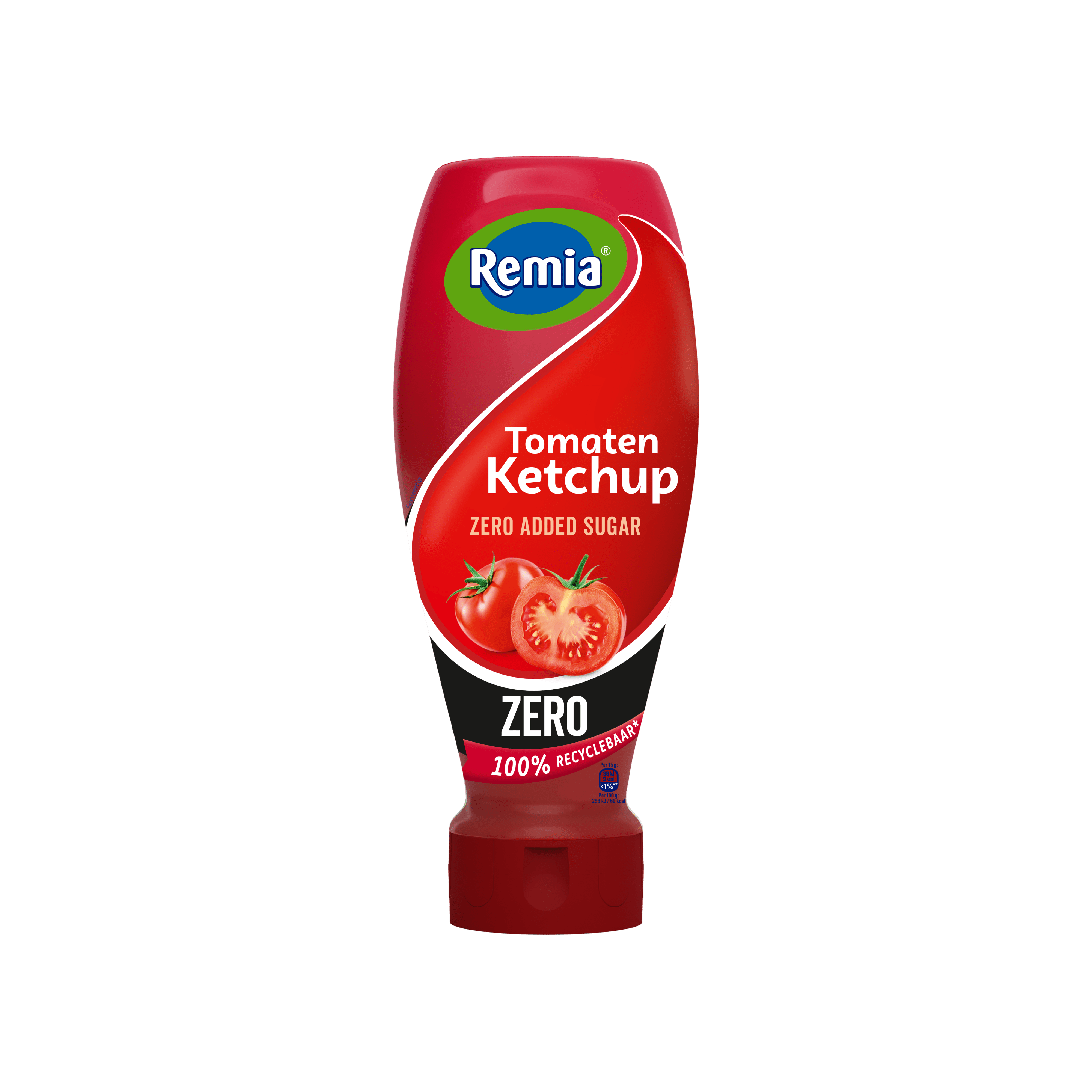 Remia Tomatenketchup Zero is een smaakvolle ketchup met alleen van nature aanwezige suikers uit de tomaten.