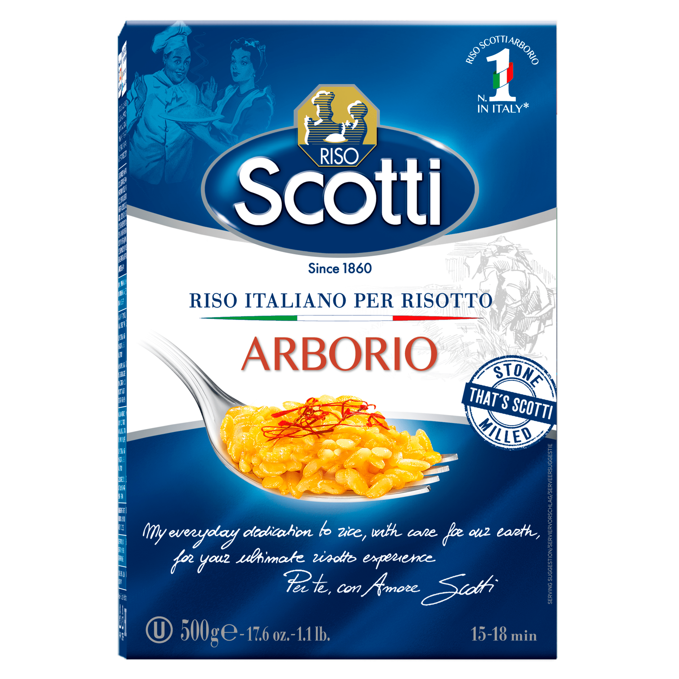Stone milled That's Scotti My everyday dedication to rice, with care for our earth, for your ultimate risotto experience Per te, con Amore Scotti Your Italian risotto experience Name a more iconic Italian rice. You're right: That's Arborio! by Riso Scotti The perfect choice for mouth-watering risotto: your ticket to genuine Italian cuisine. Love and Care for the Environment "Siamo riso, prima di tutto" We Are All Rice Grains We support our farmers and work hard to safeguard our Italian rice and promote an eco-efficient agriculture. Sustainable Production We are committed to reducing CO2 emissions: we recycle production waste and convert it into the energy we use in our factory. Minimum cardboard 80% from recycled material The Perfect Grain of Rice since 1860 Six generations. Only the best Italian rice. And the same passion since 1860. The same you have today when enjoying and sharing the things you love. Perfect grains, gently dehusked and slowly refined by an emery stone. The authentic Italian risotto experience.