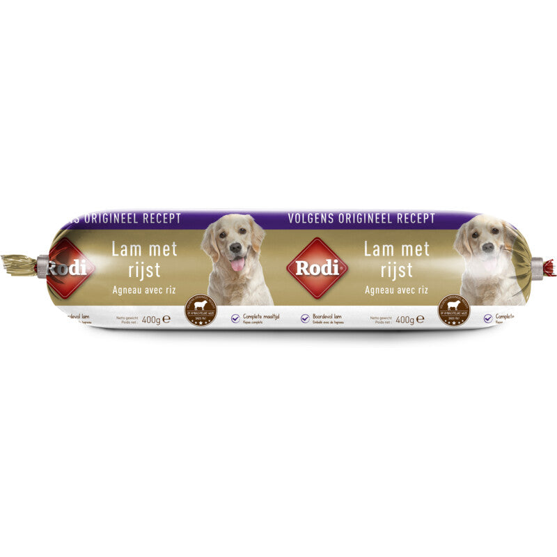 Rodi worst lam met rijst is een complete en zeer smakelijke hondenvoeding op basis van lam, rijst en kip. Door de rauwe voeding te stomen in de verpakking is deze niet alleen zeer smakelijk maar bovendien ook nog eens heel gezond. Daarnaast is het een ideale snack voor in een voerspeeltje of als beloning tijdens de training. Ook bij het toedienen van medicijnen of het smakelijker maken van de dagelijkse voeding biedt Rodi worst uitkomst! Na opening is de voeding nog 5 dagen houdbaar in de koeling. Uiteraard kan de de worst ook in delen worden ingevroren voor later gebruik. Boordevol lam Zonder kunstmatige geur-, kleur- en smaakstoffen Ideaal als tussendoortje of beloning tijdens training Complete maaltijd 25 gram per kilogram lichaamsgewicht per dag.na openen maximaal 5 dagen houdbaar in de koeling.