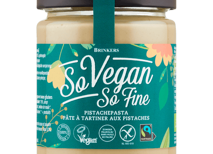 100% Biologisch Vegan Zonder palmolie Ontdek de heerlijke smaak van So Vegan So Fine Pistachepasta. Deze zijdezachte pasta is gemaakt van 100% biologische ingrediënten, perfect voor een gezonde levensstijl. Of je nu veganist bent of gewoon op zoek bent naar gezondere alternatieven, deze pistachepasta is een fantastische keuze. Wat deze pistachepasta uniek maakt? Het is vrij van palmolie en bevat enkel natuurlijke ingrediënten. Dit maakt het een ethisch verantwoord product dat je zonder schuldgevoel kunt genieten. Perfect voor op brood, in smoothies of als topping voor desserts! 100% biologische ingrediënten: Geniet van de pure en authentieke smaak van biologisch gecertificeerde pistachenoten. Vegan en palmolievrij: Een sustainable keuze die past binnen een veganistische levensstijl. Voor Nederlanders in het buitenland is het soms een uitdaging om hun favoriete producten te vinden. De So Vegan So Fine Pistachepasta is een heerlijke manier om een beetje van Nederland in je keuken te brengen. Bestel deze pasta eenvoudig via Dutchshopper, dé plek waar je al je favoriete Nederlandse producten kunt vinden. Waarom zou je kiezen voor Dutchshopper? We bieden betrouwbaar en snel internationaal verzenden, zodat je deze heerlijke pistachepasta zonder gedoe aan je winkel kunt toevoegen. Mis het niet!