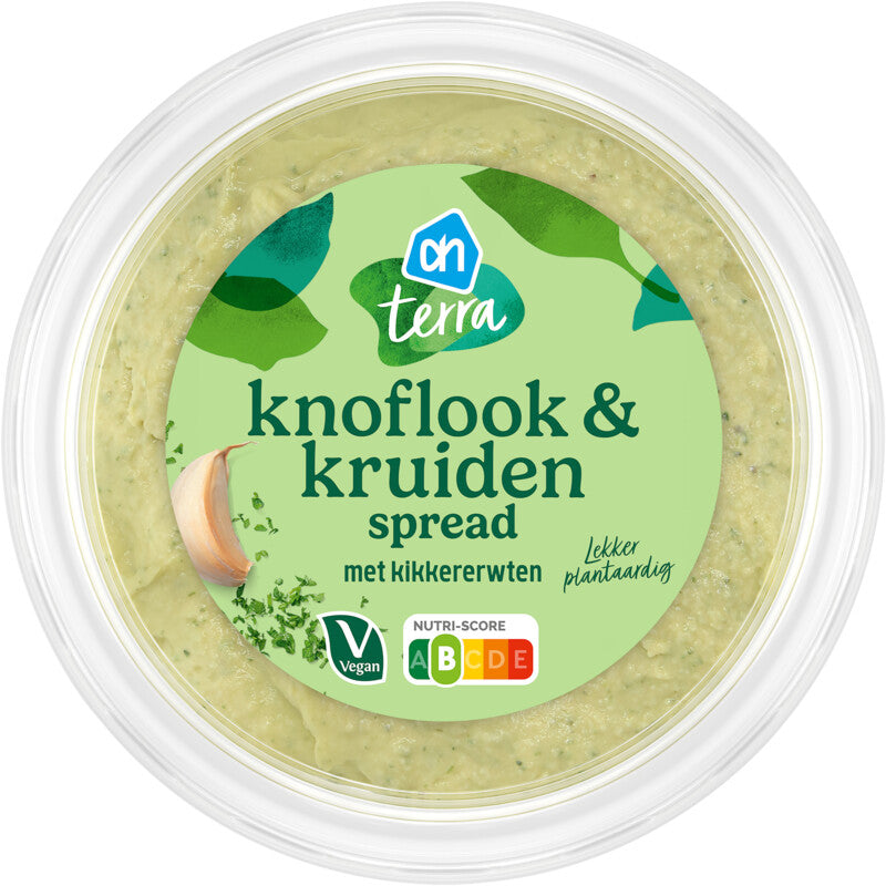 Knoflook & kruidenspread met kikkererwten In een handomdraai het lekkerste beleg voor op brood en cracker Lekker voor op brood, cracker, borrel of voor op een wrap Romig en kruidig van smaak