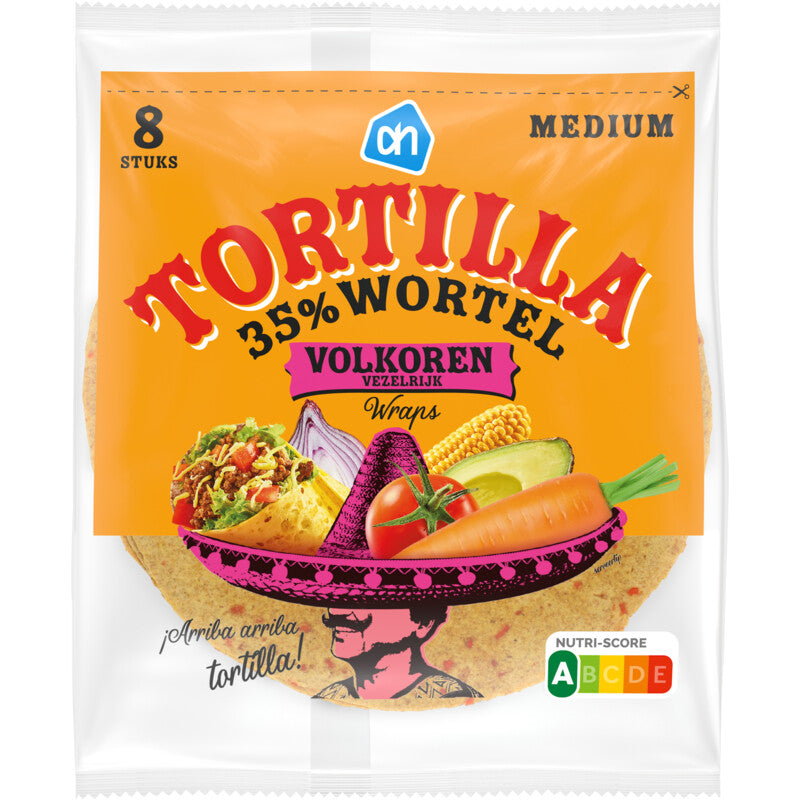 Met deze zachte AH volkoren wortel tortilla wraps kun je eindeloos variëren. De basis van echte Mexicaanse gerechten of voor het bereiden van lekkere hapjes. Zowel warm als koud te serveren. Tip! Gebruik deze tortilla wrap als variatie op een sandwich. Vezelrijk en bevat 35% wortel. Lekker voor bij de lunch, borrel, of als avondeten.