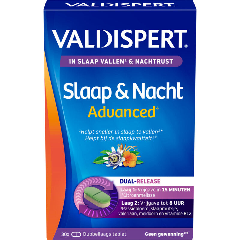 Valdispert Slaap & Nacht Advanced helpt om sneller in slaap te vallen door citroenmelisse en ondersteunt het behoud van een gezonde nachtrust door passiebloem.