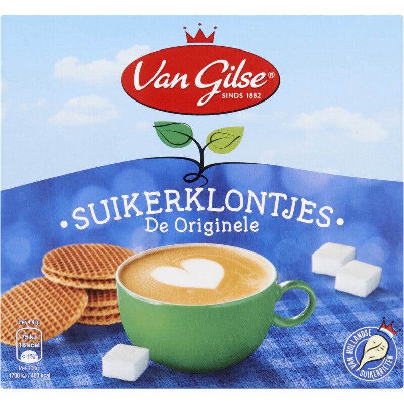 Van Gilse Originele suikerklontje is het meest gebruikte suikerklontje van Nederland. De originele suikerklontjes lossen snel en gemakkelijk op in thee, koffie en andere warme dranken. Gemaakt van suikerbieten van eigen bodem De idéale zoeter voor warme dranken Een klontje van 4,4 gram bevat slechts 18 calorieën