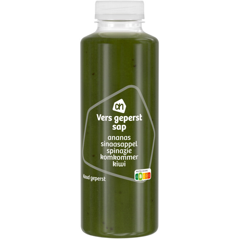 Ingrediënten: 40% ananas, 33% sinaasappel, 10% komkommer, 10% spinazie, 7% kiwi.