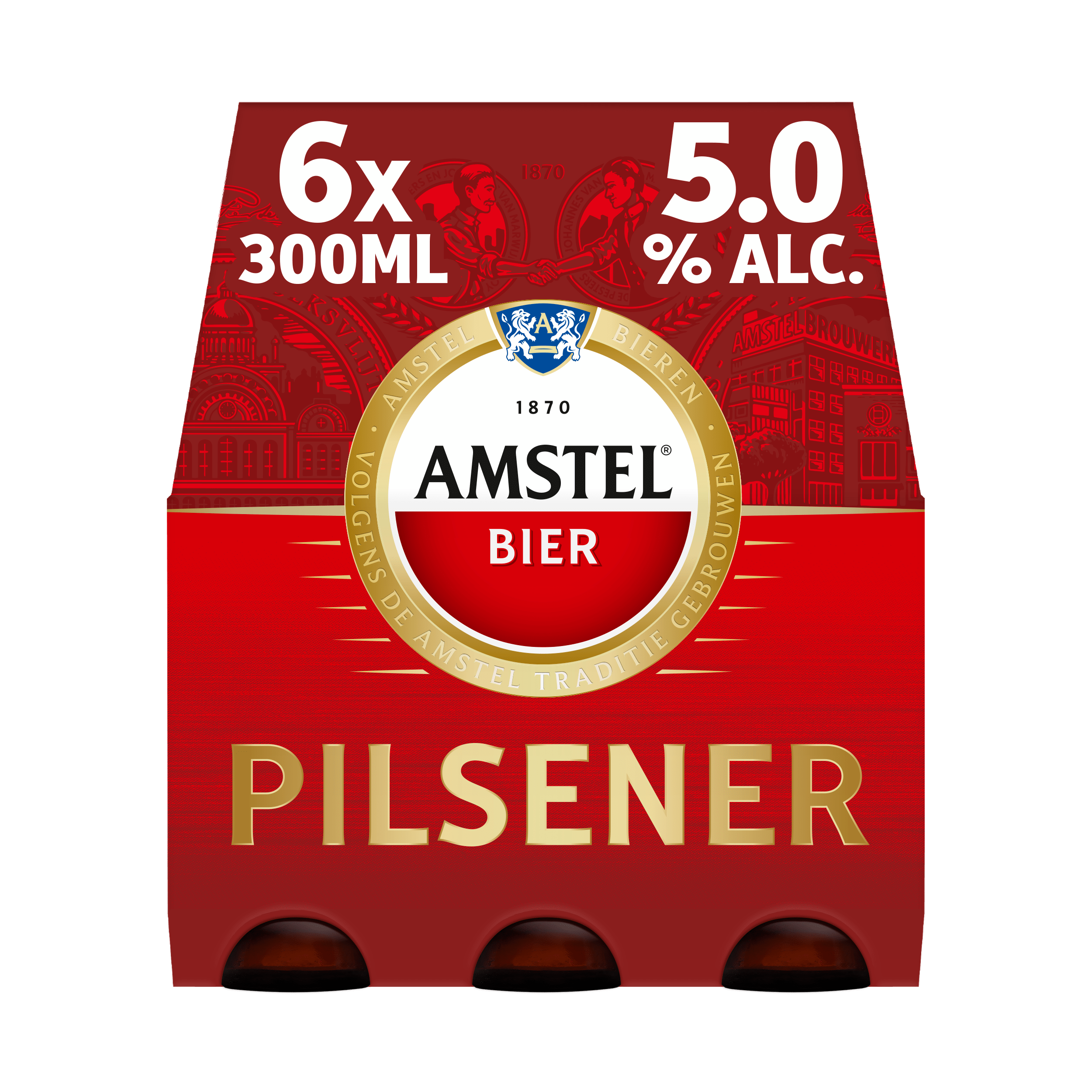 Amstel Pilsener Amstel bier wordt sinds 1870 met liefde gebrouwen voor al die onvergetelijke momenten in het leven. Amstel Pilsener is een volmout bier en wordt gebrouwen met natuurlijke ingrediënten. Het resultaat is een helder goudgeel bier met een volle, toegankelijke smaak en een stevige schuimkraag. Het perfecte bier om van te genieten en te delen met vrienden.