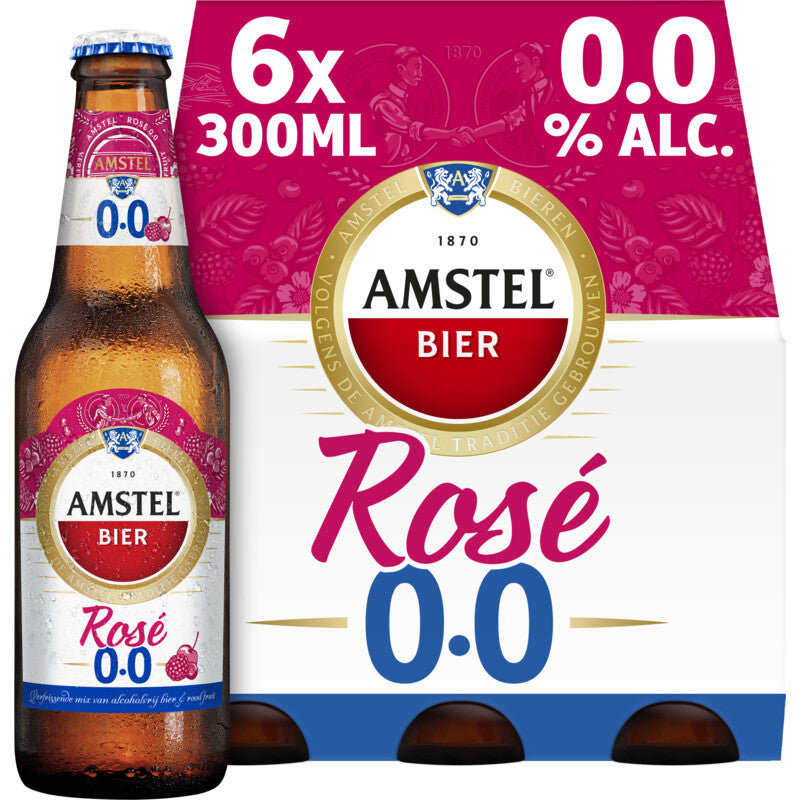 Amstel rose 0.0% is een frisse mix van alcoholvrij Amstel bier en rood fruit, heerlijk fruitig met 0% alcohol. Voor onvergetelijke momenten met vrienden.Categorie: fruitbierSmaak: heerlijke smaak van rood fruitAlcoholpercentage: 0.0%Uit een fruitig vaatje getapt