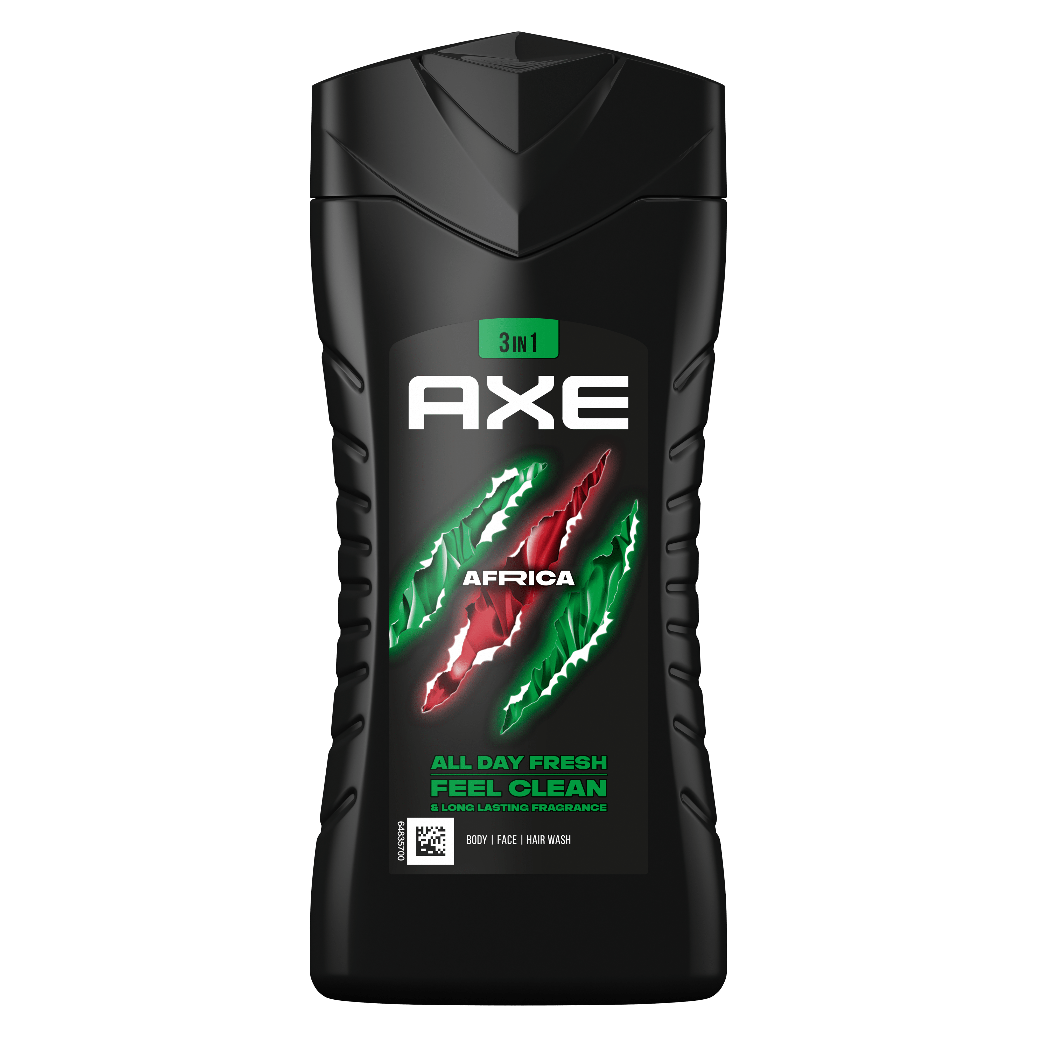 De AXE Africa 3-in-1 Douchegel zorgt voor een verfrissende en relaxte verzorging en reiniging van je lichaam, gezicht en haar. Deze douchegel heeft een frisse geur van geperste mandarijn met een ondertoon van sandelhout en laat je tot wel 12 uur lang onweerstaanbaar lekker ruiken. Met AXE-douchegel start je de dag of de avond goed. Geniet je van deze geur? Probeer dan ook eens de AXE Africa Deodorant Bodyspray.