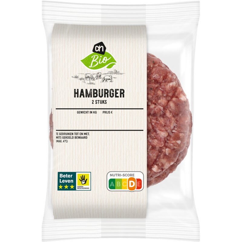 Hamburger van mild gekruid biologisch rundvlees met een rulle structuur en stevige bite. Voor een broodje hamburger of bij de warme maaltijd. Biologisch rundvlees Bereiding: koekenpan, ongeveer 8 minuten Ook geschikt voor BBQ of grill Met 3 sterren beter leven keurmerk Hamburger van mild gekruid biologisch rundvlees met een rulle structuur en stevige bite. Voor een broodje hamburger of bij de warme maaltijd. Biologisch rundvlees Bereiding: koekenpan, ongeveer 7-9 minuten Ook geschikt voor BBQ of grill Met 3 sterren beter leven keurmerk