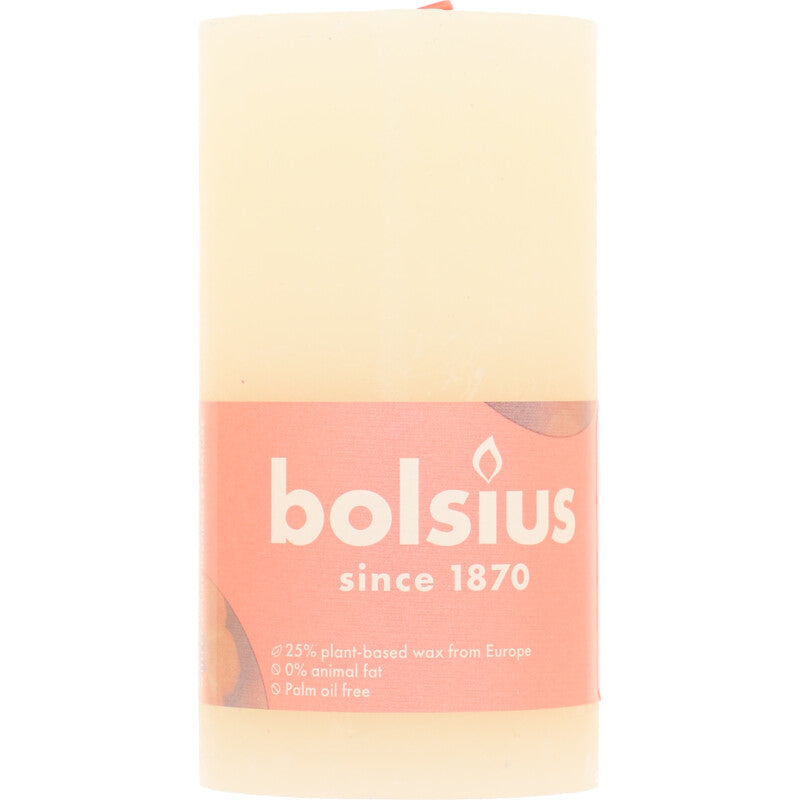 Bolsius rustiek stompkaars 13cm soft pearl. met natuurlijke vegan wax zonder palmolie en dierlijk vet afwerking met rustieke finish perfecte vlam tot 60 uur Maak van elk moment een bijzonder moment! Met het natuurlijke licht van kaarsen zorg je voor warmte en sfeer in huis en maak je het gezellig. De Bolsius rustieke stompkaars in de ivoorwitte kleur soft pearl is 13cm hoog en brandt wel 60 uur. Gemaakt met liefde voor mens en planeet, zonder palmolie en met natuurlijke vegan wax. In de Bolsius collectie vind je rustieke kaarsen in verschillende formaten en in 23 trendy kleuren, die je goed met elkaar kunt combineren.