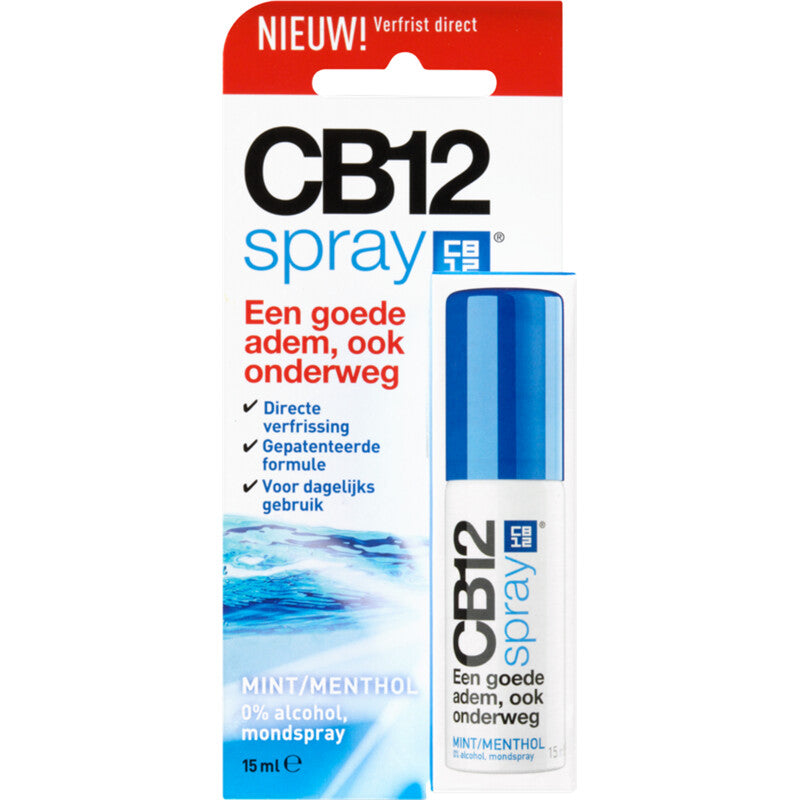 Cb12 mondspray verfrist de mond direct en zorgt langere tijd voor een goede adem. De CB12 formule neutraliseert de processen in de mond die een onaangename geur veroorzaken. Zorgt voor directe verfrissing en een goede adem Handige spray voor onderweg Voor dagelijks gebruik Unieke formule Gebruik CB12 mondspray dagelijks. Spray 1-2 keer in de mond, 2-3 keer per dag. Het flesje CB12 mondspray bevat 15 ml vloeistof en is voldoende voor ongeveer 150 sprays. Gebruik CB12 mondspray als aanvulling op CB12 mondwater. De spray is door het kleine formaat ideaal voor onderweg.