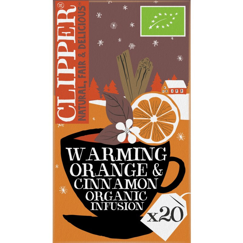 Een verwarmende en kruidige infusie met sinaasappel en kaneel: voor de doorgewinterde theedrinker. Infusie van sinaasappel en kaneel Biologisch 20 eenkopszakjes Clipper staat voor natural, fair en delicious! In onze thee worden alleen pure en natuurlijke ingredienten verwerkt. Ook is Clipper het grootste Fairtrade theemerk ter wereld! In 2018 waren we s werelds eerste theebedrijf dat overging op plasticvrije, gmo-vrije, ongebleekte theezakjes. Smaak is de kern van alles wat Clipper doet. Onze Master tea-blenders ontwikkelen unieke smaaksensaties waar je van gaat stralen! Bij Clipper geloven we dat elke kop thee telt. Elk kopje dat je drinkt, betekent dat we het goede kunnen blijven doen om de mens en de planeet te ondersteunen.