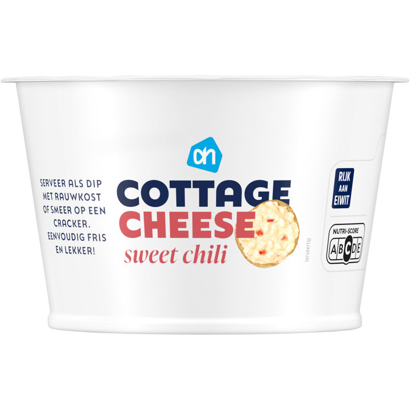 Cottage cheese sweet chili Cottage cheese sweet chili Productformulier €3 , 65 €4,00 (incl. btw) Aantal Voeg toe In winkelwagen Eigenschappen Vegetarisch, Glutenvrij Bewaren Ten minste houdbaar tot en met: zie bovenzijde, mits gekoeld bewaard (max. 7°C). Vaak goed na deze datum. Kijk, ruik en proef.