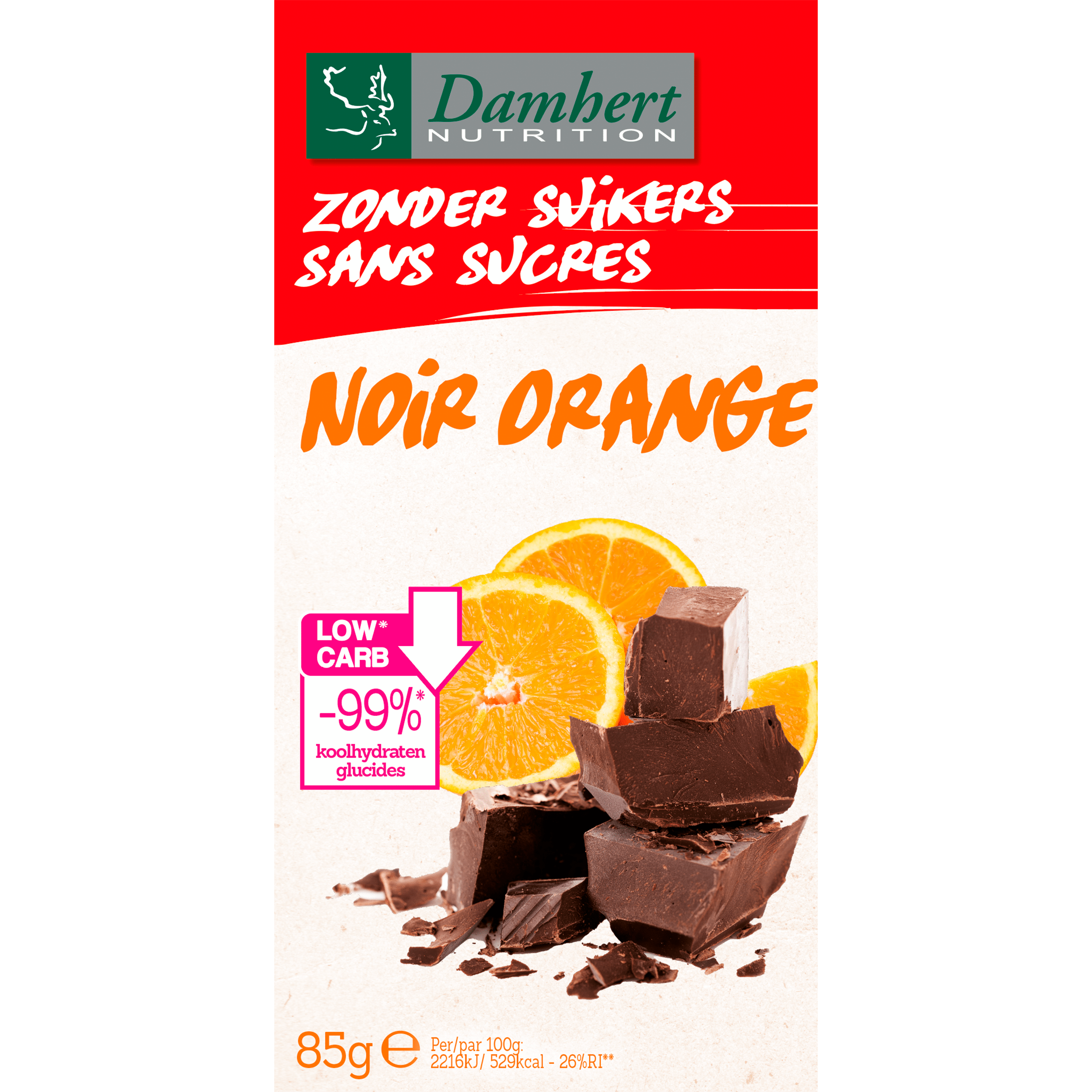 pure chocolade (cacao: 45,9% minimum) (cacaomassa, zoetstof maltitol, cacaoboter, emulgator: SOJAlecithine, natuurlijk vanillearoma), stukjes sinaasappel (4,00%), aroma: sinaasappel (0,04%). Overmatig gebruik kan een laxerend effect hebben. Ook glutenvrij!