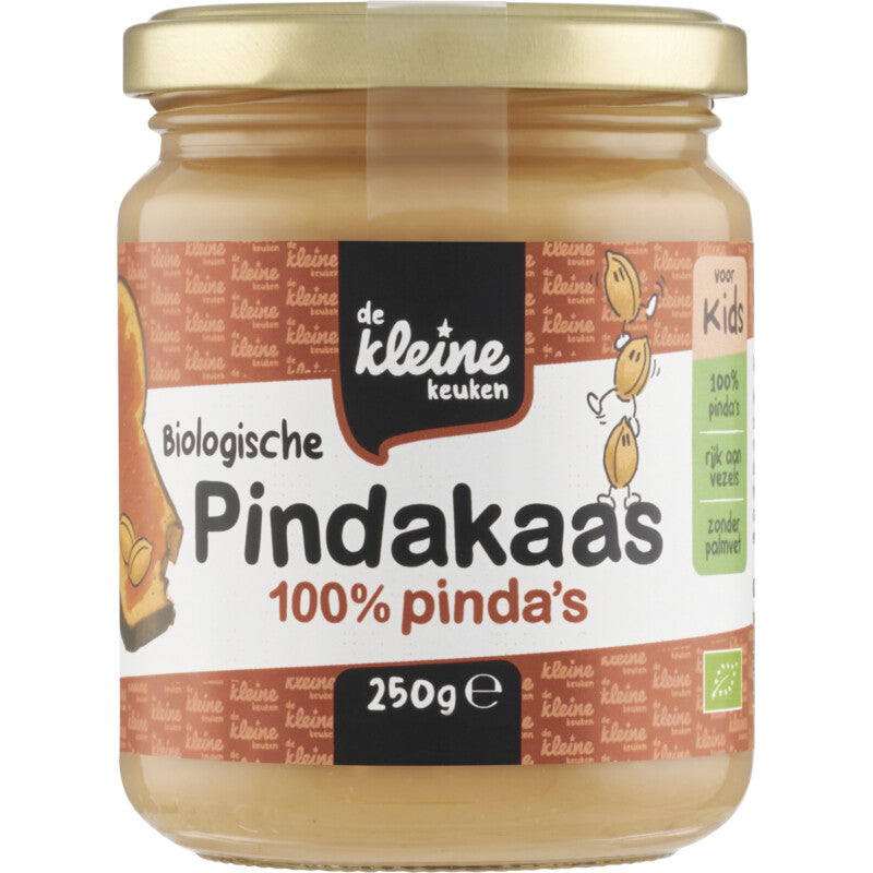 Echte biologische pindakaas met 100% pinda's! Gemaakt met alleen maar pinda's Lekker smeuig en helemaal biologisch Zonder palmvet, zout en suikers Bij De Kleine Keuken hebben we een grote missie: elk kind gezond en energiek laten opgroeien. Daarom zorgen wij voor superkracht in iedere hap. Al onze producten zijn biologisch en gemaakt van natuurlijke ingredienten. Bovendien bevatten ze nooit onnodige toevoegingen en zijn ze wel heel erg lekker. Zo weet je zeker dat ieder hapje boordevol voedingsstoffen zit, want daar worden kleine buikjes nou eenmaal heel erg blij van.