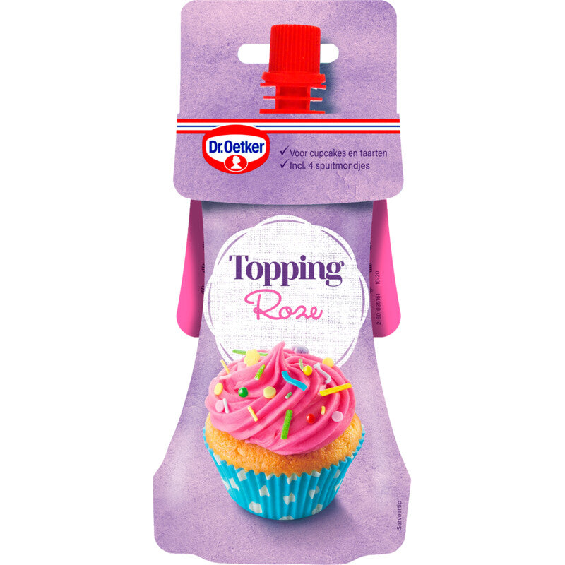 Met dr. Oetker topping roze maak je zelf de mooiste roze streepjes, ruitjes, lijntjes of toefjes op jouw cupcakes. Eenvoudig, snel en natuurlijk lekker, dat is dr. Oetker topping roze. Feestelijke roze decoratie voor jouw baksels, direct klaar voor gebruik. 4 soorten spuitmondjes voor 4 versier variaties. 140 gram roze topping om van te smullen. Perfect voor een babyshower, verjaardag of bakmoment met de kids. Tip: wil je cupcakes met marsepein versieren? Doe dan eerst een laagje topping op de cupcake. Zo blijft de marsepein smeuïg en blijven de versiersels beter op de cupcake plakken. Bovendien is het ook nog eens extra lekker!