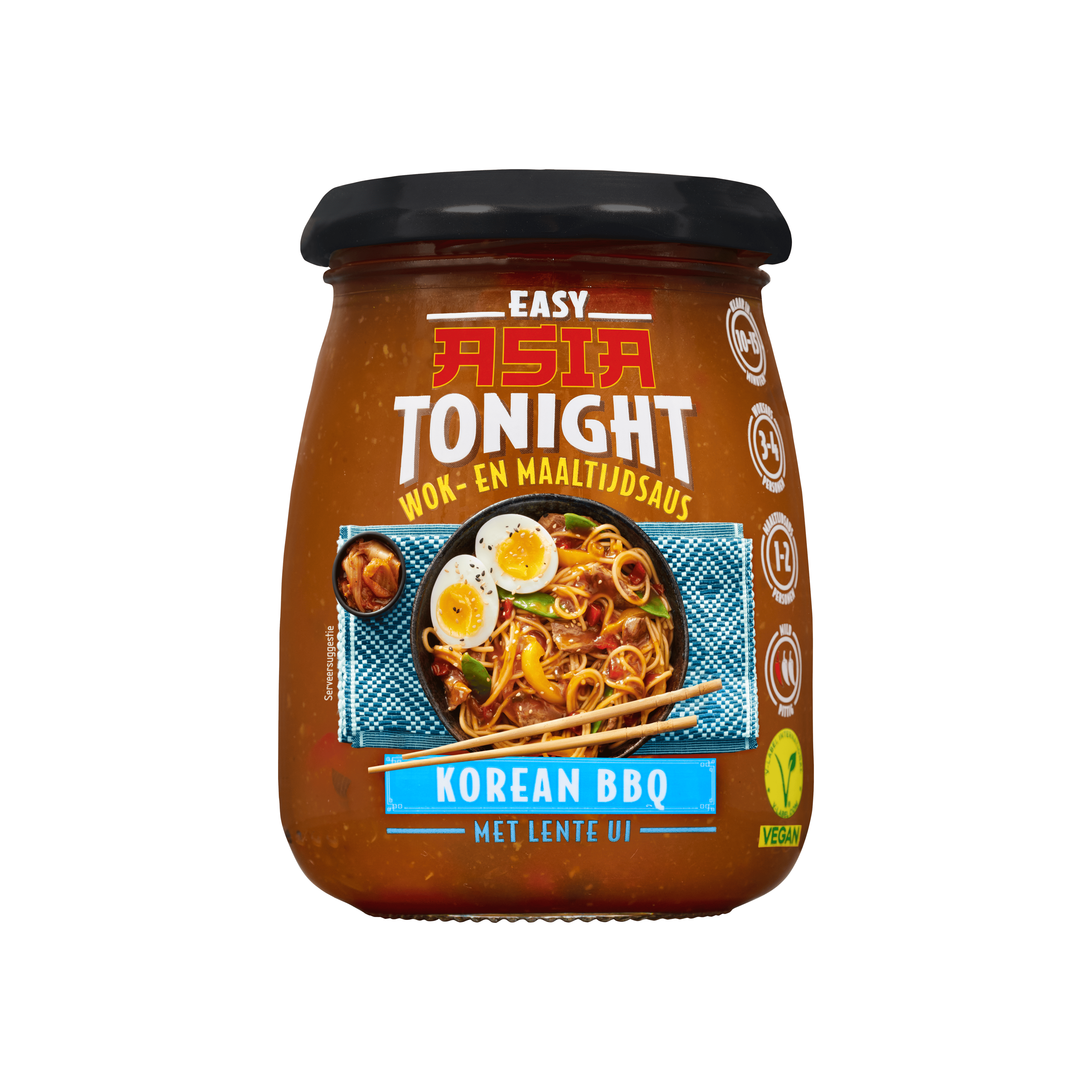 Easy Asia Tonight Korean BBQ is een licht pittige wok-en maaltijdsaus in Koreaanse stijl op basis van gochujang, met paprika en lente ui. Geen tijd of geen zin om lang in de keuken te staan?
