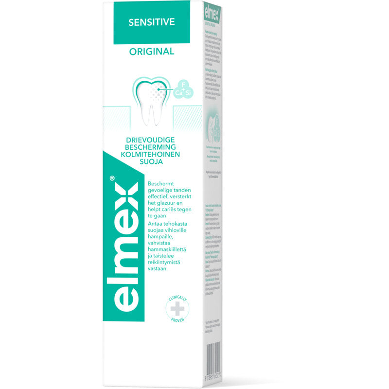 Reinig en bescherm je gevoelige tanden met elmex Sensitive. De aminfluoride vormt een bescherming rondom gevoelige tandhalzen en beschermt zo effectief tegen pijnlijke prikkels en tandhalscariës. Beschermt effectief tegen gevoelige tanden en tandhalscariës Zachte reiniging met Aminfluoride Klinisch bewezen