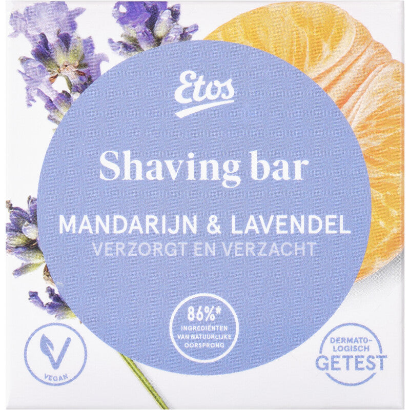 De etos shaving bar met kokosolie verzacht de huid tijdens het scheren. De natuurlijke milde werking van deze shaving bar geeft een extra glad scheerresultaat. De geur combinatie van Mandarijn, pepermunt en lavendel geeft een verkoelende en verfrissende beleving. De shaving bar kan even lang meegaan als twee 250ml shaving spuitbussen Dermatologisch getest Vegan In een wereld, die streeft naar duurzaamheid, zijn solid bars een doorbraak in je persoonlijke verzorging. Deze compacte, plasticvrije alternatieven zijn niet alleen vriendelijker voor het milieu, maar bieden ook tal van voordelen voor je huid en haar. Etos heeft diverse soorten in het assortiment, gemaakt van > 86 % ingredienten van natuurlijke oorsprong