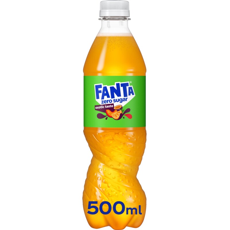 Fanta exotic zero: verfrissende bruisende frisdrank met zoetstoffen en natuurlijke aroma's zonder toegevoegde suiker (alleen van nautre aanwezig). Heerlijk, bruisend, speels.Bruisende, caloriearme frisdrank met een exotische smaakGeweldige, fruitige traktatie met een verfrissende en tropische smaakLevendige kleuren en natuurlijke aroma's: perfect als tussendoortjeKoolzuurhoudende drank met sap