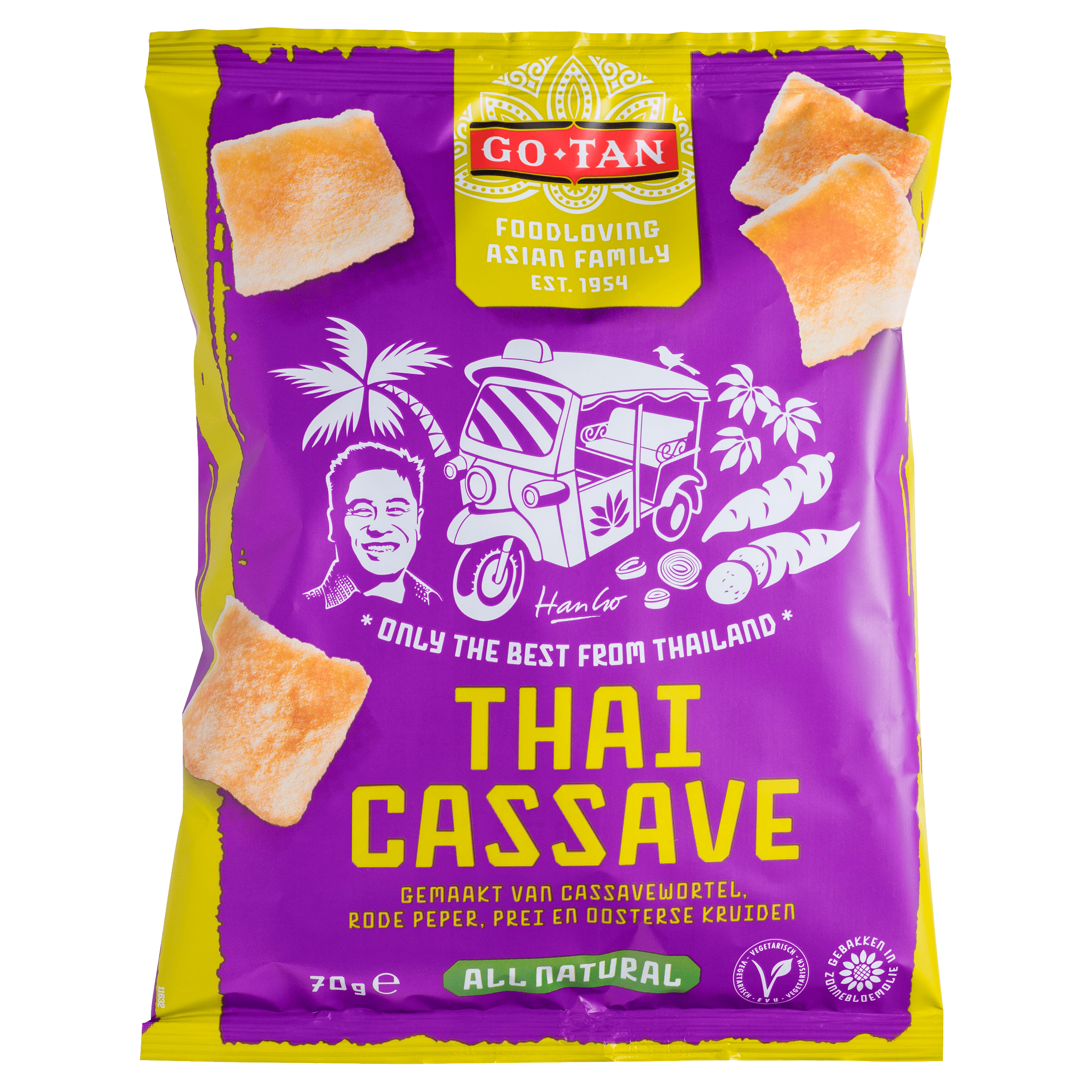 Thai Cassave is een Cassave kroepoek gemaakt van cassavewortel, rode peper, prei en oosterse kruiden. Deze heerlijke knapperige kroepoek is lekker om te eten bij een wokgerecht of bij een borrel.