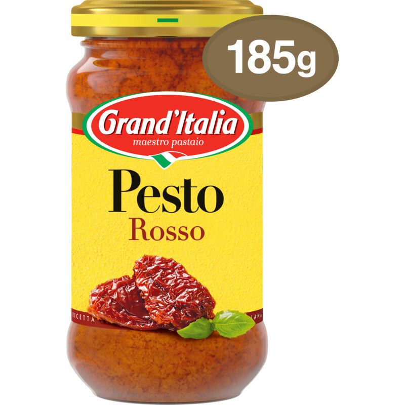 Pesto Rosso is een bekende smaakmaker met zongedroogde tomaten uit de authentieke Italiaanse keuken. Lekker door de pasta, als saladedressing of om vis- en vleesgerechten mee op smaak te brengen. Ricetta Italiana - Volgens Italiaans recept Met zongedroogde tomaten Tip: Lekker als dressing door een pastasalade Glutenvrij Pesto Rosso is een bekende smaakmaker uit de authentieke Italiaanse keuken, gemaakt met zongedroogde tomaten. De pesto's van Grand'Italia worden volgens traditioneel Italiaans recept bereid. Een pasta pesto recept kan snel door de week of wat langer in het weekend. Ook kun je eindeloos variëren met verse ingrediënten. Pesto doet het ook goed als dip voor grissini, in een dressing door je pastasalade of op een broodje. Recept (4 personen) > Pasta Pesto met Pipe Rigate en Pesto Rosso: 400g Grand'Italia Pipe Rigate, 1 pot Grand'Italia Pesto Rosso (185g), 400g cherrytomaten, 150g zwarte olijven, 15g basilicum, 100g Parmezaanse kaas. Geniet en breng het gevoel van La Bella Vita aan tafel: spontane, zorgeloze momenten rondom simpel goed eten. Vol met passie, optimisme en een goede sfeer, van de keuken naar de tafel. Jezelf laten gaan en optimaal genieten van de simpele kleine goede dingen in het leven, zoals de Italianen dat doen. Dat is...