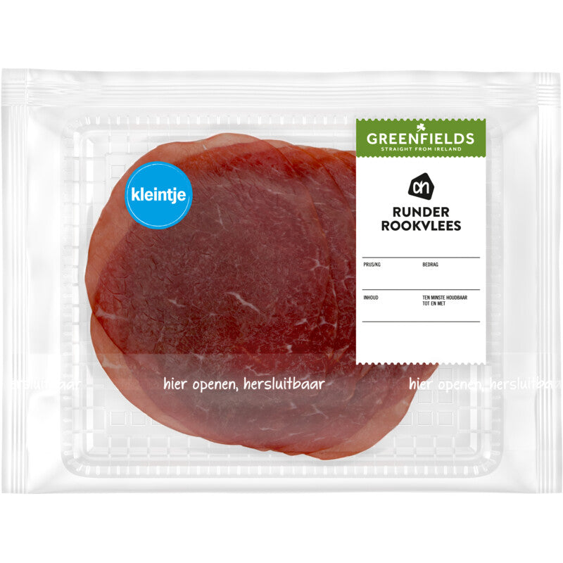 Gedroogd en gerookt met beukenhout. Mager vleeswaar In verfijnde plakken gesneden Ideale portieverpakking zodat je niets hoeft weg te gooien Lekker op een broodje met wat roomkaas en komkommer.
