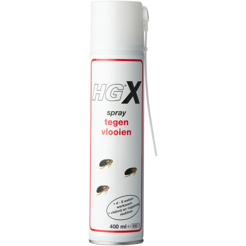 Hgx spray tegen vlooien bestrijdt vlooien in huis direct, snel en effectief. Een vlooienprobleem is nu zo opgelost. Het kan ook worden gebruikt als preventief middel om een plaag te voorkomen. Uiterst effectieve anti vlooien spray 4 - 6 weken werkzaam Vlekvrij Hgx spray tegen vlooien bestrijdt vlooien in huis direct, snel en effectief. Een vlooienprobleem is nu zo opgelost. Het kan ook worden gebruikt als preventief middel om een plaag te voorkomen. BGebruik biociden veilig. Lees voor gebruik eerst het etiket en de productinformatie.Hg doet wat het belooftHg ontwikkelt producten vanuit de gedachte dat specifieke problemen om specifieke oplossingen vragen. HG biedt daarom een ruime keuze schoonmaakmiddelen die bestaat uit specifieke en kwalitatief hoogwaardige probleemoplossers voor reiniging, onderhoud en herstel.Gebruiksaanwijzing Pas hgx tegen vlooien toe bij kieren, naden of andere plaatsen waar insecten zich schuilhouden, zoals onder of achter kasten, koelkasten, radiatoren en apparatuur. Voor de behandeling eerst goed stofzuigen, vervolgens de bus goed schudden en spuit daarna vanaf een afstand van ongeveer 20 cm gelijkmatig over de te behandelen plek tot het oppervlak licht vochtig is.
