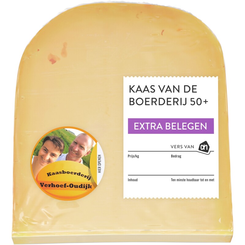 Kaas van de boerderij heeft een volle en karakteristieke smaak. Deze kaas is gemaakt op de boerderij, van weidemelk die direct van de koe komt. Met zorg hebben we een aantal boeren geselecteerd die deze kaas maken. Deze boeren hebben gevoel voor smaak en kwaliteit. Zij maken de kaas op de boerderij, met originele receptuur, speciaal voor Albert Heijn. Het zijn familiebedrijven, die veel kennis hebben van kaasmaken, vaak voortgekomen uit generaties kaasmakers. Smaak: Extra pittig en karakteristiek. Herkomst: Nederland. Exclusief bij Albert Heijn. Kaas van de boerderij heeft een volle en karakteristieke smaak. Deze kaas is gemaakt op de boerderij, van weidemelk die direct van de koe komt. Met zorg hebben we een aantal boeren geselecteerd die deze kaas maken. Deze boeren hebben gevoel voor smaak en kwaliteit. Zij maken de kaas op de boerderij, met originele receptuur, speciaal voor Albert Heijn. Het zijn familiebedrijven, die veel kennis hebben van kaasmaken, vaak voortgekomen uit generaties kaasmakers. Smaak: Extra pittig en karakteristiek. Herkomst: Nederland. Exclusief bij Albert Heijn.