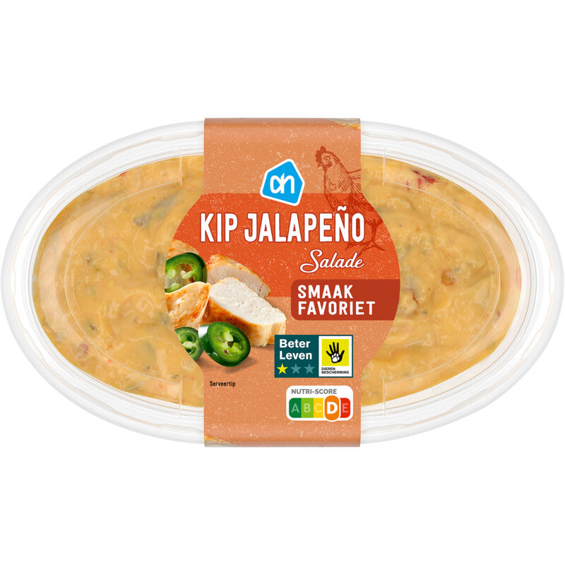 Ingrediënten: 28% kippenvleesᵃ, water, raapolie, jalapeño, suiker, rode chili, zetmeel (maïs, aardappel), vrije-uitloopeigeel, azijn, zout, gemodificeerd maïszetmeel, natuurlijke aroma's, conserveermiddel (gebufferde azijn [E267], kaliumsorbaat [E202], natriumbenzoaat [E211]), gele peper, dextrose, voedingszuur (citroenzuur [E330], azijnzuur [E260]), verdikkingsmiddel (xanthaangom [E415], guarpitmeel [E412]), specerijen, rozemarijnextract, gejodeerd zout, verstevigingsmiddel (calciumchloride [E509]).ªBeter Leven keurmerk 1 ster.