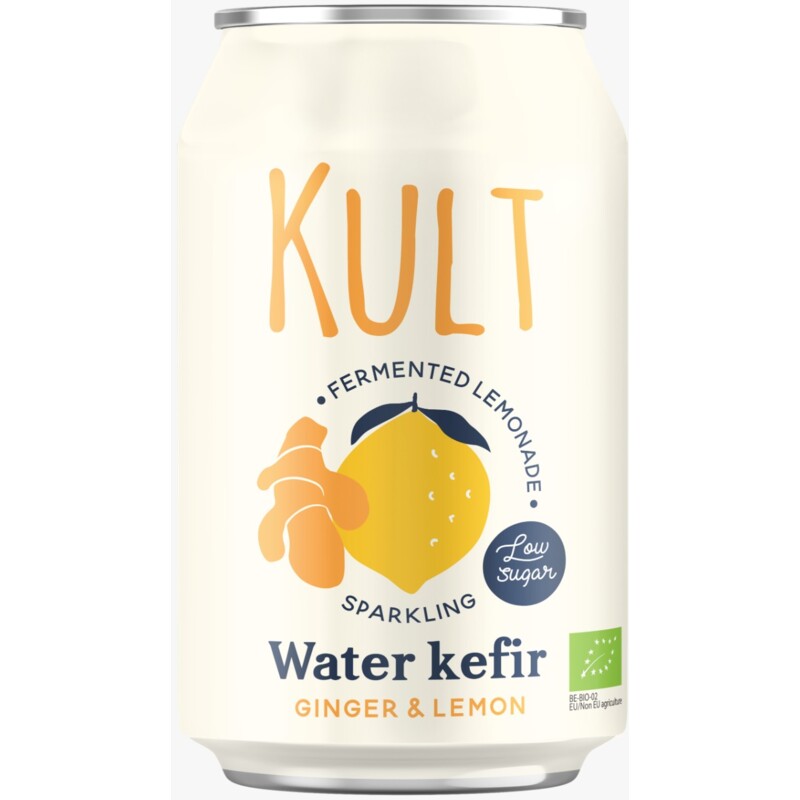 Ingrediënten: Waterkefir (gefilterd water, kefir cultuur, suiker* (deels omgezet door fermentatie), citroenconcentraat*), gembersap (1.6%)*, citroensap (0.8%)*, *biologische landbouw.