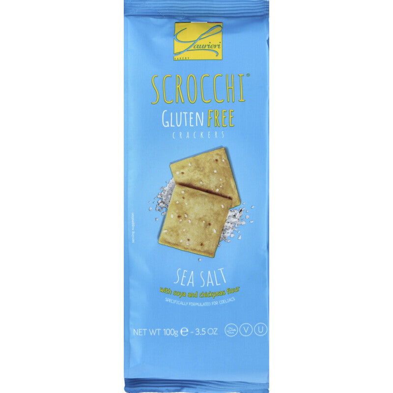Laurieri Premium glutenvrije scrocchi zeezout wordt gemaakt met soja en kikkererwtenmeel en is de glutenvrije variant van de scrocchi zeezout.GlutenvrijMet soja en kikkererwtenmeelZonder melk en eieren waardoor het past in een veganistische leefwijzeZonder kunstmatige toevoegingen