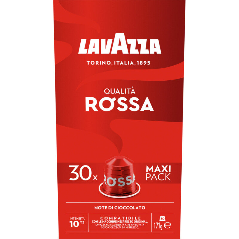 Deze iconische Lavazza blend van afrikaanse robusta en braziliaanse arabica koffie zorgt voor een aromatische en soepele smaak met tonen van chocolade en gedroogd fruit.Smaaksterkte/intensiteit op schaal 1-13: 1030 aluminium capsulesAluminium capsules compatibel met nespresso koffiemachinesAroma: chocolade en gedroogd fruit