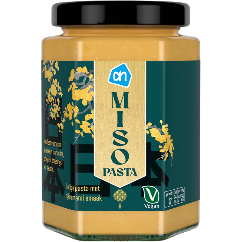 AH Miso pasta is de perfecte basis voor soepen, sauzen en marinades. Voegt een rijke umami smaak toe aan ieder gerecht. Miso pasta wordt gemaakt met sojabonen, die kort worden gefermenteerd. Veganistisch en glutenvrij. Tip: meng de miso pasta met boter om een heerlijke boter met rijke umami smaak te creëren. Gebruik deze miso boter voor biefstuk of bij groenten.