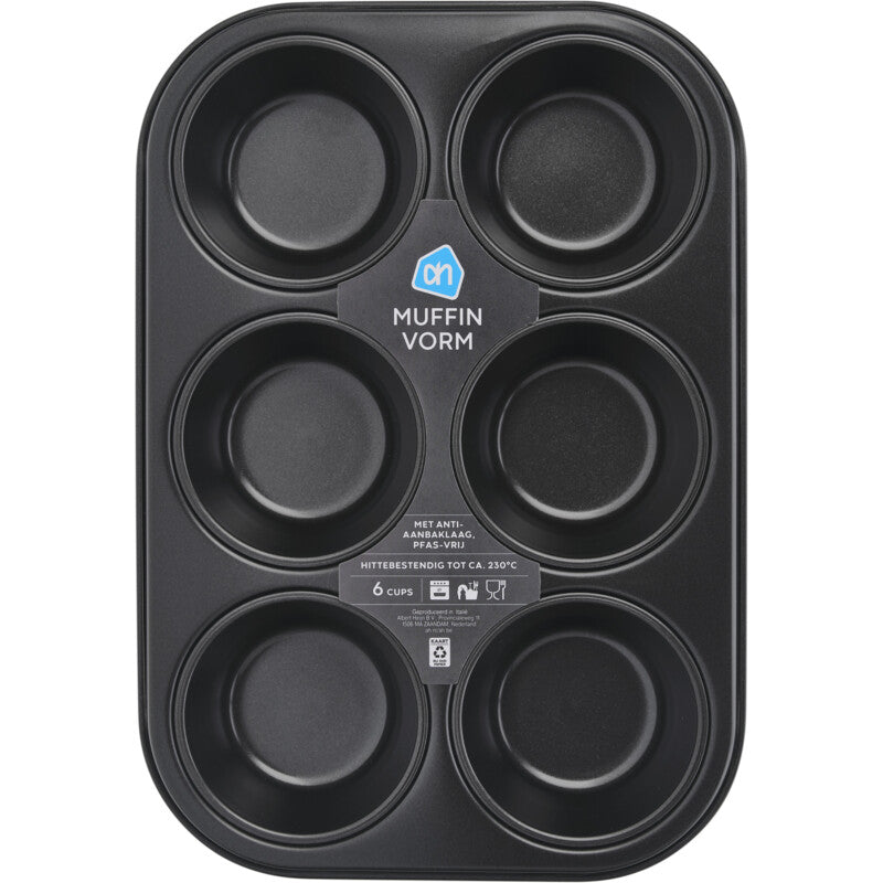 Muffintray met antiaanbaklaag om heerlijke muffins en cupcakes te maken. Pfas-vrij. Hittebestendig tot ca. 230 ºC. 6 cups.