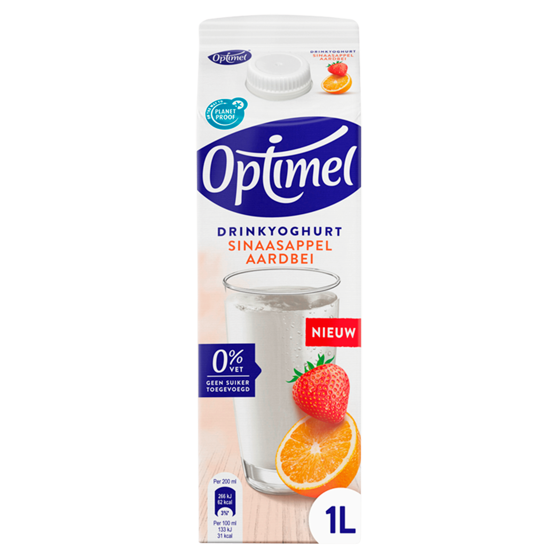 Optimel drinkyoghurt is van nature een bron van calcium en proteïne. Calcium is goed voor je botten en proteïne draagt bij aan de groei en het onderhoud van je spieren.