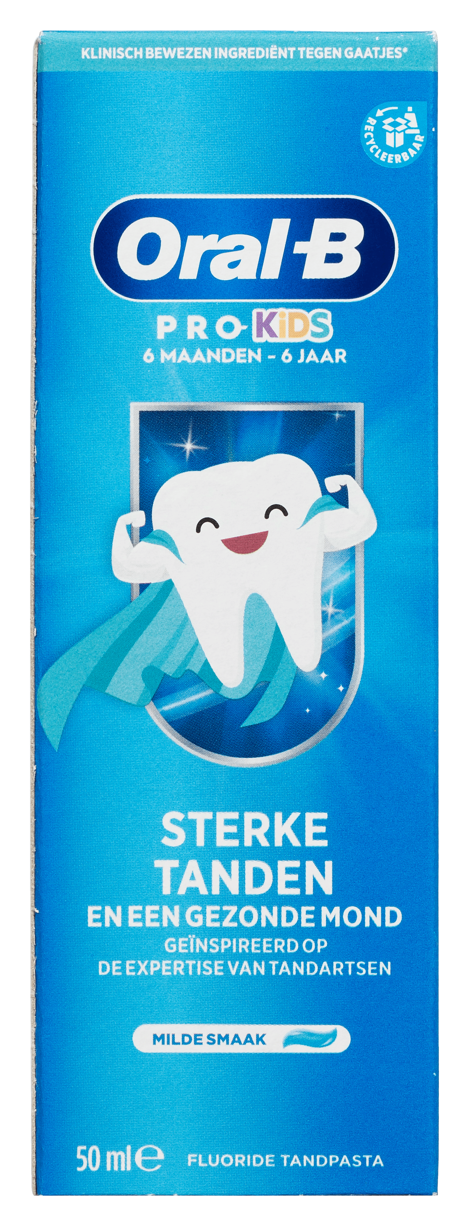 Oral-B Pro Kids tandpasta is speciaal ontworpen voor kinderen tot 6 jaar. Geïnspireerd door tandartsen om gaatjes te helpen voorkomen door tanden te beschermen tegen dagelijkse zuren en suikers. De milde samenstelling en het fluoridegehalte zijn speciaal ontwikkeld voor kinderen.