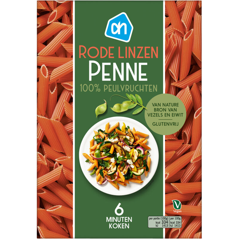 Rode linzen in de vorm van penne. De bereiding is hetzelfde als bij gewone pasta maar door de peulvruchten is het voedzamer, lekkerder én glutenvrij. 100% peulvruchten Glutenvrij en veganistisch Rode linzen in de vorm van penne. De bereiding is hetzelfde als bij gewone pasta maar door de peulvruchten is het voedzamer, lekkerder én glutenvrij. 100% peulvruchten Glutenvrij en veganistisch