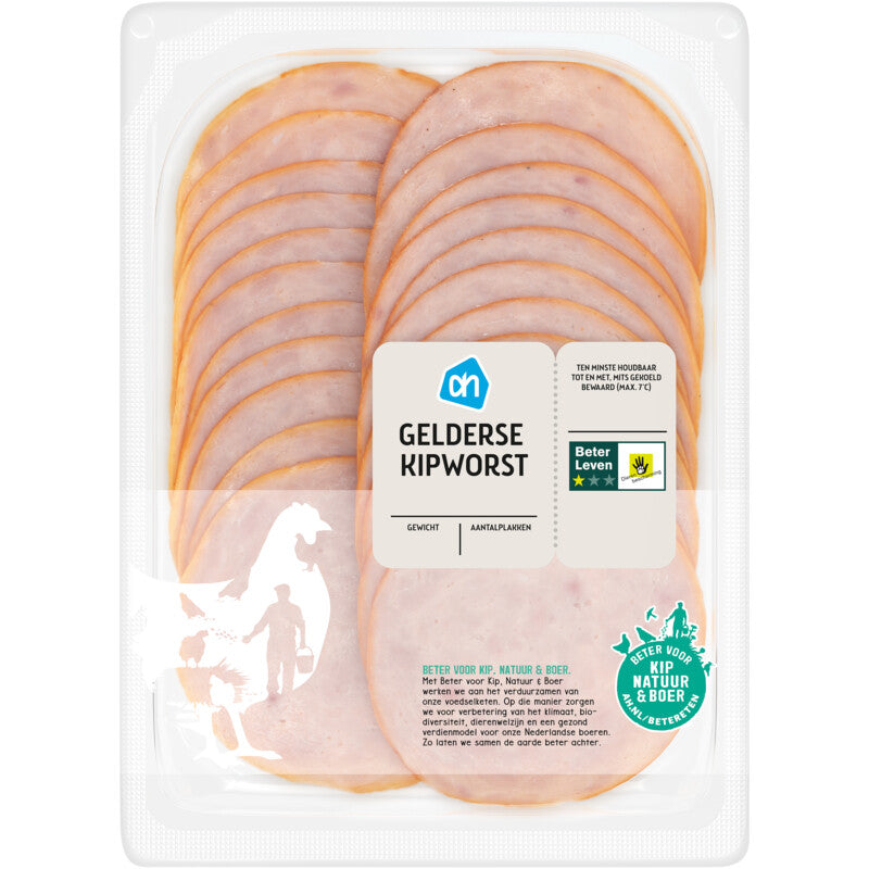Een heerlijke smeuïge kipworst met een rijke smaak. De worst is gerookt en dat proef je terug in de karakteristieke smaak. Voor op de boterham óf gewoon lekker als plakje tussendoor. Gemaakt met smakelijk kippenvlees DNAH Kip Een heerlijke smeuïge kipworst met een rijke smaak. De worst is gerookt en dat proef je terug in de karakteristieke smaak. Voor op de boterham óf gewoon lekker als plakje tussendoor. Gemaakt met smakelijk kippenvlees BLK 1 ster Ben je op zoek naar authentieke Nederlandse smaken in het buitenland? Dan is de Scharrel Gelderse Kipworst van Albert Heijn precies wat je nodig hebt! Deze ambachtelijke kipworst is niet alleen vol van smaak, maar ook perfect voor op je brood of als snack. Bestel deze unieke worst gemakkelijk via Dutchshopper, zodat je kan genieten van de kwaliteit die je gewend bent uit Nederland, waar je ook bent. Unieke Rookaroma: De geroosterde smaak zorgt voor een heerlijke stevige bite. Gemakkelijk te gebruiken: Perfect voor op brood, als snack of bij een borrelplank. Laad je voorraad Nederlandse delicatessen aan met de Scharrel Gelderse Kipworst, het ideale product voor expats die de Nederlandse keuken willen herontdekken. Laat je niet tegenhouden door de beperkte verkrijgbaarheid in het buitenland...